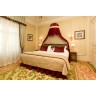 Headboard, 115x190 cm, two night tables, 58x34x34 cm, two lamps, H 52 cm,bedcover and curtains