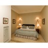 Tête de lit, 115x190 cm, deux chevets, 60x35x35 cm, deux lampes, H 60 cm, couvre lit, paire de rideaux