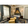 Headboard 120 x 177 cm, two night tables 62 x 40 x 40 cm, round side table H 67 x D 60 cm, armchair 80 x 80 x 70 cm