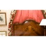 Marqueted wooden Headboard, 124x105 cm, a night table, 59x36x34 cm, a lamp, H 66 cm, a bedcover and curtains