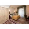 Headboard, 177x194 cm, two night tables, 60x45x32 cm, two lamps, H 48 cm, bedcover and curtains