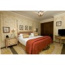 Headboard 214 x 196 cm, two night tables 68 x 74 x 40 cm, coffee table 74 x 78 x 49 cm, bedcover and curtains H 290 cm