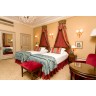 Bed headboard, 95x108 cm, bedcover, night table, 60x35x34 cm, stool, 50x60x40 cm