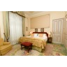 Headboard, bedcover, two night tables, two lamps and stool