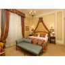 Headboard, canopy, bedcover, curtains, two night tables and two lamps