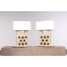 Thomas Boog (born in 1959) Fossile - Unique piece Pair of lamps Wood, chromed steel, seashells, fossils, nacre and fabric 'Thomas Boog' label beneath the base of each lamp Model created in 2013 H 59 × L 46 × W 21,5 cm