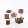 Tony Paul (1918-2010) pour Woodhin Hall Ensemble de porte-revues et corbeille à papier Noyer et laiton Date de création : années 1950 H 55,5 × L 45 × P 26 cm ; H 44 × L 38 × P 24 cm H 42 × L 51 × P 29 cm ; H 34 × L 47,5 × P 33,5 cm H 32 × L 24 × P 24 cm ; H 25 × L 23,5 × P 23,5 cm