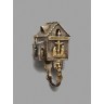 Ring inspired by Jewish wedding rings in the shape of a house. Here the ring represents a church in a very distinct way: Christ on the cross on the outside, small figures and crucifixes in relief on the inside.