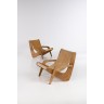 Brazilian production (20th c.) Pair of armchairs Veneered plywood and fabric Model created in the 1950s H 76 × L 76 × W 82 cm