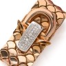 Work from the 1945-50s Flexible ribbon bracelet in 18k yellow gold (750‰) with articulated "honeycomb" links, the clasp in the shape of a buckle with a fastener set with round diamonds