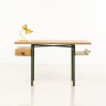 Travail français Bureau Bois, cuir et métal peint Date de création : années 1950 H 76 × L 130 × P 66 cm Mathieu Matégot (1910-2001), attribué à Lampe Métal peint Date de création : années 1950 H 40 × L 28 cm