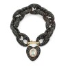 Bracelet composed of eleven oval links in gold-studded turtle-shell, fermoir in 18k (750‰) yellow gold with a heart, adorned with an oval facetted aquamarine, close-set