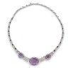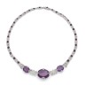 Ravishing choker necklace in platinum (850‰) with openwork links, set with circular-cut round diamonds and facetted oval amethysts, including one more important in the centre
