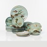Travail italien Service de 18 pièces comprenant : 7 grandes assiettes (Ø 25 cm) ; 6 assiettes à soupe (Ø 21,5 cm) ; 1 grand plat (L 36 cm) ; 1 plat oblong (L 29 cm), 1 soupière (Ø 25 cm), 1 coupe et 1 assiette plate (Ø 24 cm) Céramique émaillée Signé Guerrieri, Castelli Date de création : vers 1950