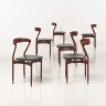 Travail italien Suite de six chaises Bois laqué et skaï Date de création : vers 1950 H 67 × L 47 × P 47 cm