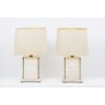 Italian production (XX) Pair of table lamps Travertine, brass and fabric Creation date: circa 1970 H 68,5 × L 42 × P 25 cm
