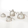 Travail italien Service composé d'une théière, une cafetière, un sucrier et un pot à lait Argent 800/1000 (poinçons 800 et 556F) Date de création : années 30 H max 15 cm