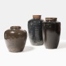 Trois grandes potiches à couverte brune, bleutée ou noire, Chine H 56 x D 42 cm et H 77 x D 40 cm et H 70 x D 38 cm