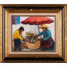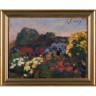Three paintings Oil on isorel by Gilbert Germaux sbd and dated 73 (28 x 23 cm) Oil on canvas Flower market - signed Roger Vandenbulck (20 x 25 cm) Oil on panel Flower fields signed Leroux (26 x 34 cm)