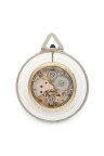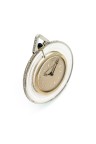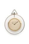 Case: round with diamond setting on the case middle and bail, outer part in rock crystal, hallmark for the platinum on the bail and illegible maker's mark