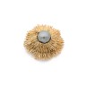 VAN CLEEF & ARPELS "Thistle" devant-de-corsage/pendant in 18k yellow gold (750‰) adorned with a grey cultured pearl Signed, numbered 12481, engraved (C) Van Cleef & Arpels, or Diameter : 4 cm Gross weight : 28 g Signed suede pouch