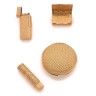 Beauty set in 18k yellow gold (750‰) wickerwork composed of a round powder case, its grip enhanced with diamonds and a pillbox
