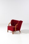 Armchair Oak wood and fabric Edited by Slagelse Møbelværk Model created circa 1940 H 71 ×L 74 × W 80 cm Bibliography : Slagelse Møbelværk commercial catalogue,1944, model illustrated pp. 27, 30