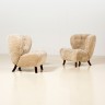 Viggo Boesen (1907-1987) , attribué à Paire de fauteuils Laine et bois Date de création : vers 1940 H 72 × L 64 × P 62 cm
