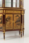 Mahogany and gilded bronze display case, with Japan lacquer panels, two doors and a lower drawer, and a glass door on the superior part, front beams with detached columns on toupie feet