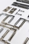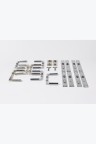 Set of seven pairs of door handles, four pairs of kick plates, two pairs of rosettes, and two window handles