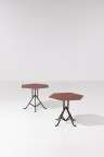 & Frank Lloyd Wright (1868-1959) Pair of side tables - 'Arizona Biltmore' model Wrought iron and lacquered metal Model created around 1927 H 46 x W 60 x D 52cm Note: Model designed for the Biltmore Hotel, Phoenix, USA.