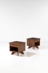 Pair of bedside tables - Model '215' 'Origins' series Walnut and brass Widdicomb edition Publisher's label in a drawer Model created in 1959 H 53 x W 56 x D 53 cm