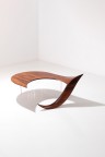 Coffee table - 'Pegasus' model Walnut and acrylic Signed 'M. Coffey' under the tray Model created in the 1970s H 58 x W 131 x D 90cm H 42cm (table top)