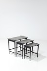 Set of three nesting tables, model no. 423 Tin and stained birch Edited by Svenskt Tenn Model created circa 1930 H 56×L 66,5×W 34cm H 49,5×L 53,5×W 29,5cm H 45,5×L 46×W 27cm