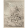 Xavier de Poret (1867-1975) Jeune lièvre tapi au pied d'une gerbe de blé Mine de plomb et crayon de couleur sur papier Signé en bas à gauche 34,5 × 24,5 cm