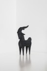 Goat with horns pointing upwards, 2025 Sculpture Glazed ceramic Inscribed signature 'Dominique Pouchain' on the belly H 58 x W 35 x D 18 cm