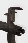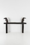 Janus console table, 2025 Stained oak and chestnut wood and glazed ceramic Signed with a plaque reading 'IKABois, Dominique Pouchain' under the tabletop H 125 x W 182 x D 30 cm