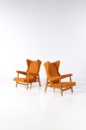 Pair of armchairs - Model PIF1 – variation of the ‘Fiorenza’ model Ash wood and fabric Edited by Arflex Model created circa 1955 H 105×L 76×W 93cm