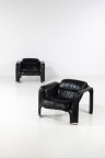 Pair of armchairs - 'Pohjola' model Leather, PVC, and aluminum Haimi Oy edition Model created in 1965 H 68 × W 91 × D 94 cm Good overall condition Friction traces and two important scratches on the leather Scratches on the aluminum
