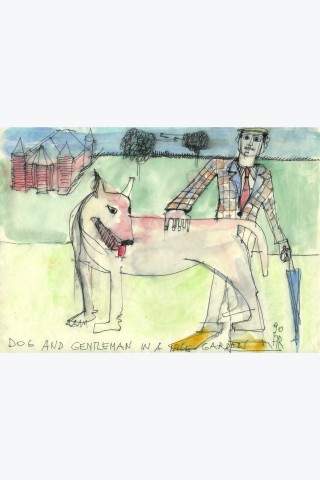 Dog and Gentleman in a nice garden, 1990