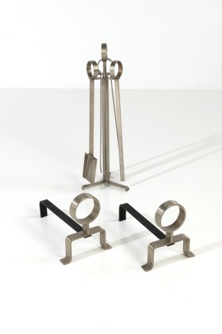 Pair of andirons and fireplace set