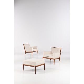 ƒ Terence Harold Robsjohn-Gibbings (1905-1976) Paire de fauteuils et ottoman