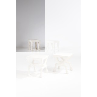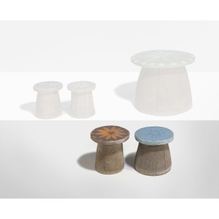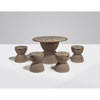 Hans Sumpf Ceramics (XXe) Table basse et quatre tabourets - Pièce unique