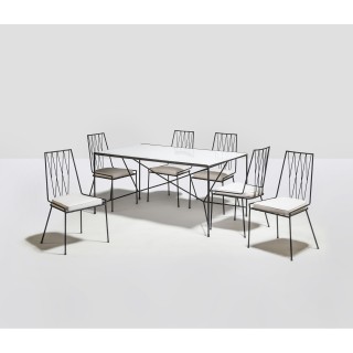 Danny Ho Fong (XXe) Table d'extérieur et six tabourets