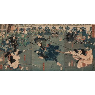 Deux triptyques oban tate-e, l'un par Kunisada, représentant d ...
