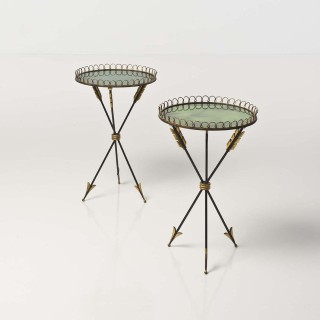 André Arbus (1903-1969) Paire de guéridons Fer forgé, doré e ...