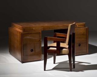 André Sornay (1902-2000) Bureau et fauteuil Acajou, laiton e ...