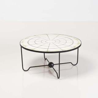Denise Gatard (1921-1992) Table basse Céramique et fer forgé ...