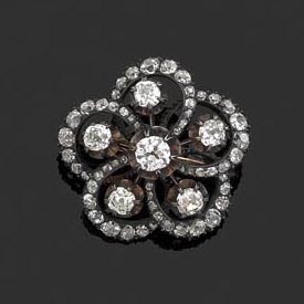 Broche "rosace" en argent à décor d'entrelacs entièrement sertie ...