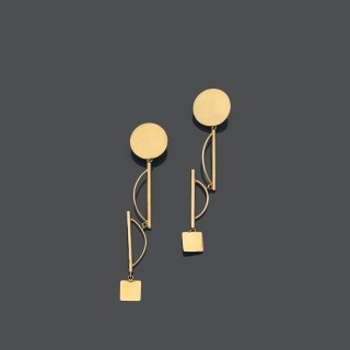 Ettore SOTTSASS (1917-2007) 1984-86 Paire de longs pendants d'oreilles mobiles en or jaune 18k (750‰)